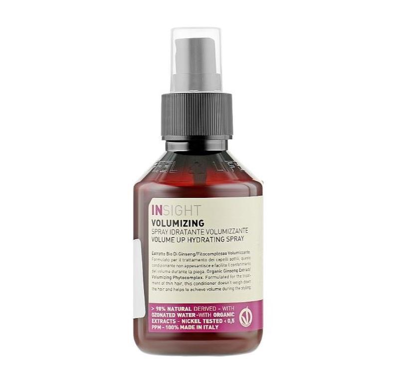 Опис: Спрей для об'єму волосся Volumizing Spray Insight призначений для створення неймовірного, природного об'єму та текстурування локонів. Спрей легко розпилюється по всій довжині волосся, швидко вбирається. Формула збагачена на 98% натуральними компонентами та екстрактами. Екстракт женьшеню насичує структуру волосся та надає об'єму. А екстракт білої кропиви та псиліум зміцнює, тонізує та пом'якшує. Незмивний засіб підходить для всіх типів волосся, зокрема тонкого і ослабленого. Забезпечує захист від шкідливого впливу теплових інструментів для укладання, допомагаючи запобігти пошкодженню волосся. Склад: Aqua (Water), Cetyl Alcohol, Stearyl Alcohol, Dipalmitoylethy, Hydroxyethylimaniunm, Methosultate, Behenamidopropy Dimethylamine, Glycerin, Myristy, Lactate, Lamium Album Extract, Panax Ginseng Root ryt Alcohol, Lactic Acid , Parfum IFragrancel, Benzyl Aicohol, Glycery Laurate, Tocopherol. Спосіб застосування: Нанести трохи засобу по всій довжині волосся перед укладанням/сушінням. За допомогою зручного дозатора розпилення буде рівномірним та дозованим. Після нанесення розчесайте пасма і виконайте укладання звичним способом. Дизайн упаковки може змінюватись виробником