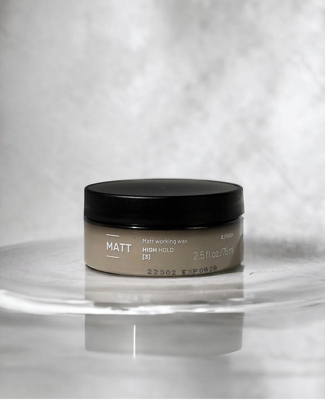 Матовий робочий віск K.FINISH MATT призначений для всіх типів волосся. Засіб розділяє і виділяє пасма волосся, допомагає сформувати зачіску. Захищає волосся від забруднення навколишнього середовища та шкідливого впливу ультрафіолетових променів. Ідеально підходить для густого волосся. Має свіжий аромат з тонкими нотами рослинних мотивів та деревини. Рівень фіксації: 3 Застосування: Нанести невелику кількість засобу на сухе волосся і надати форму пальцями.