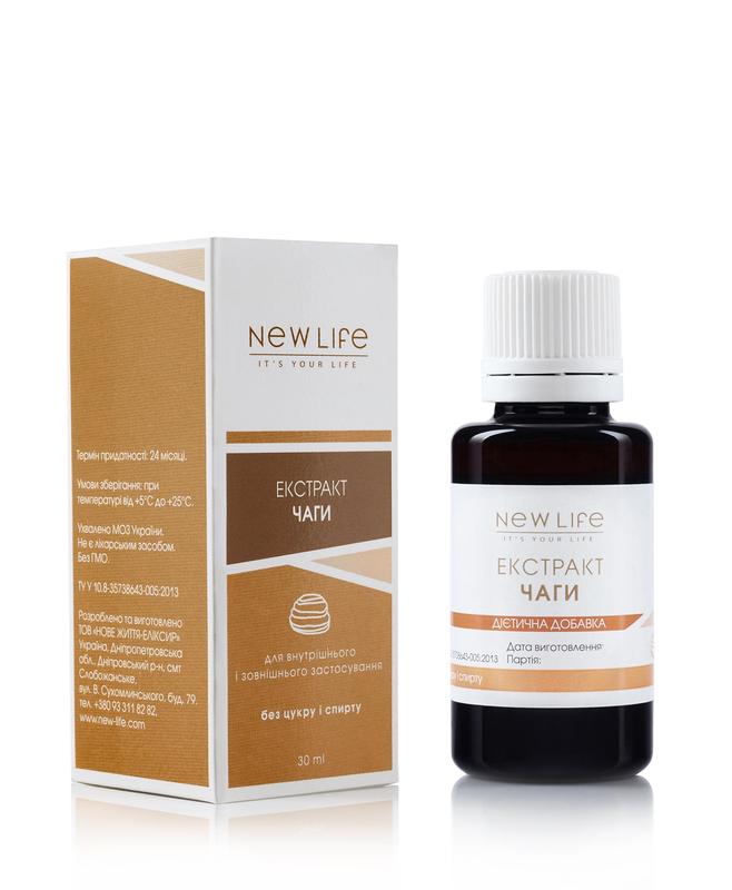 Чаги екстракт Чага гриб — містить велику кількість корисних речовин: флавоноїди, органічні кислоти, стерини, алкалоїди, смоли і дубильні речовини, меланін, фітонциди, мінерали і мікроелементи (магній, кобальт, калій, залізо, цинк, марганець, мідь, нікель, алюміній, срібло). Завдяки такому складу чага є біостимулятором і потужним онкопротектором, здійснює інгібуючу дію на клітини пухлин різних видів Має антибактеріальну і противірусну дію, нормалізує кишкову мікрофлору і функції травлення, обмежує запалення, прискорює загоєння ерозій, виразок і пошкоджень слизової оболонки, підвищує захисні властивості слизових, в тому числі шлунка, захищає печінку і зміцнює імунітет Допомагає зміцнити стінки судин і позитивно впливає на роботу серця, нормалізує роботу дихальної та кровоносної систем, а також живлення тканин киснем і корисними речовинами, усуває запальні процеси, швидко і ефективно послаблює болі Чага має протизапальну, спазмолітичну, жовче - і сечогінну властивості, бере участь в процесах репарації ДНК (відновлення хімічних ушкоджень), функціонуванні дихальної системи, а також впливу канцерогенів і мутагенів Він стимулює обмінні процеси в організмі, відновлює кислотно-лужний баланс, нейтралізує шкідливі мікроорганізми і попередження порушень фізіологічних процесів Рекомендовано як засіб, який зміцнює імунну систему, нормалізує обмін речовин і сприяє підвищенню працездатності. Проявляє антимікробну і антисептичну властивості. Діє як онкопротектор ОБ`ЄМ:30 ml Рекомендації: по 7-10 крапель 2-3 рази на день до їжі Терміни та умови зберігання: зберігати 24 місяці від дати виготовлення в сухому, захищеному від світла та недоступному для дітей місці при температурі не вище 25˚С і відносній вологості повітря не вище ніж 85% Попередження:індивідуальна чутливість до компонентів