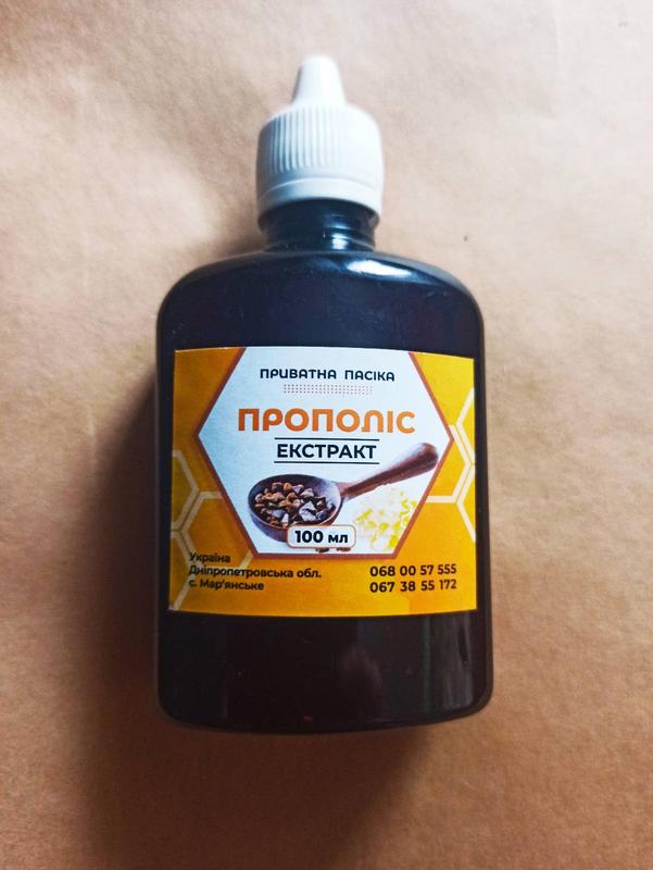 НАСТОЯНКА ПРОПОЛІСУ* Прополіс дуже цінний і надзвичайно корисний продукт, має яскраво виражену дію: • протизапальну, • антимікробну, • антивірусну, • протипухлинну, • антибіотичну, • протигрибкову, • антисептичну, • ранозагоювальну. Прополіс - стимулює регенеративні (відновлювальні) процеси, - запобігає утворенню рубців, - прискорює загоєння ран, запалень, опіків; -покращує крово- і лімфообіг. 🐝Прополіс збільшує захисні сили організму, він пригнічує розвиток патогенних мікроорганізмів, які вражають людину, в тому числі дисбактеріозних (кандидозних та ін.). Тому при вживанні прополісу кишкова мікрофлора не страждає і дисбактеріозу не буде, на відміну від антибіотиків. Прополіс підвищує імунітет та рівень гамма глобулінів в організмі. Він дуже ефективний при отруєннях − знімає інтоксикацію і ліквідує дисбактеріоз. Прополіс має виражений знеболюючий ефект, сприяє виведенню токсинів і отрут з організму.