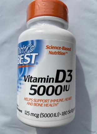 Вітамін Д3 - 5000 Допомагає підтримувати здоров’я імунітету, серця і кісток Вітамін D3 від Doctor's Best містить D3 (у вигляді холекальциферолу), необхідний організму для регулювання рівня фосфору та кальцію для здоров’я кісток, зубів і серця. Вітамін D3 виробляється в шкірі шляхом поглинання ультрафіолетового сонячного проміння. У їжі він міститься в обмеженій кількості. Захист від сонця та кліматичні фактори можуть впливати на низький рівень вітаміну D3. Вітамін D3 корисний для імунної та серцево-судинної систем, а також щільності й структури кісток і правильної роботи клітин. Він відіграє важливу роль у роботі більшості органів і систем організму та впливає на хімічні процеси імунної системи. Допомагає регулювати рівень кальцію та фосфору, необхідний для здорових кісток і зубів Допомагає підтримувати імунітет і здорову роботу серця На півроку прийому дорослим
