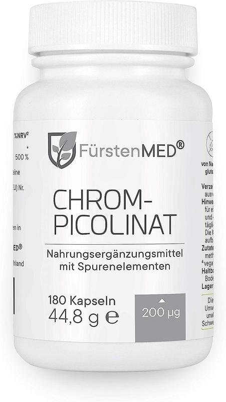 Преміальна якість: висока доза оригінального незамінного мікроелемента - чистий хром з іколінату хрому. Не таблетки, а якісні капсули по 200 мкг. Піколінат хрому пройшов лабораторні випробування для вимогливих покупців з оптимальним ефектом Природний ефект: хром з найвищою біодоступністю для оптимального догляду Сумісний, безпечний і чистий: ми використовуємо лише найкращу перевірену сировину. Веганський, без лактози, без глютену та ГМ. Без барвників, підсилювачів смаку та консервантів, антиадгезивів. Без стеарату магнію та діоксиду кремнію Найкраще для вашого здоров'я: німецьке виробництво (зроблено в Німеччині) за найвищими стандартами якості (сертифіковані ISO та HACCP), а також суворі правила гігієни. FürstenMED означає найвищу якість, перевірену в незалежних лабораторіях і сертифіковану органікою відповідно до Регламенту EC Öko Інформація про безпеку: Дієтичні добавки не призначені для заміни збалансованого та різноманітного харчування та здорового способу життя. Не перевищуйте рекомендовану добову дозу. Зберігати в недоступному для маленьких дітей місці. Інгредієнти: Піколінат хрому, покривний агент: гідроксипропілметилцелюлоза (веганська оболонка капсули), наповнювач (целюлоза). Інструкція із застосування: Приймайте по одній капсулі щодня, не розжовуючи, запиваючи достатньою кількістю рідини