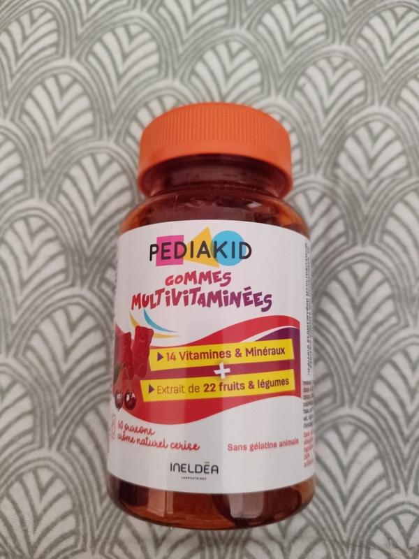 PEDIAKID ВЕДМЕЖУЙКИ МУЛЬТИВІТАМІНИ, 60 шт НАТУРАЛЬНЫЕ ЖУВАЛЬНЫЕ ВИТАМИНЫ В ФОРМЕ ВЕДМЕДИКОВ ✓ снижают утомляемость организма ✓ поддерживают иммунную систему ✓ для детей от 3 до 15 лет ✓ вкус вишни PEDIAKID НАТУРАЛЬНЫЕ ВЕДМЕЖУЙКИ МУЛЬТИВИТАМИНЫ - это жевательные витамины в виде мишек, предназначенные для детей старше 3 лет. Они содержат 14 витаминов и минералов, а также экстракт 22 фруктов и овощей, и предназначены для профилактики гиповитаминозов, при недостатке минеральных веществ и микроэлементов в период активного роста и развития ребенка. Преимущества: ✓ Сочетают в себе 14 витаминов и минералов и запатентованный экстракт 22 фруктов и овощей, чтобы обеспечить ребенка необходимыми микроэлементами. ✓ Богатые витаминами A, C, E, K, B1, B2, B3, B5, B6, B8, B9, B12, селеном и цинком, они способствуют надлежащему функционированию иммунной системы, нервной системы и психологического здоровья, и помогают уменьшить усталость. ✓ Не содержат желатина, консервантов, глютена, лактозы, искусственных ароматизаторов и красителей. ✓ Имеют приятный вкус вишни. ✓ Жевательная форма делает прием удобным и веселым для детей. Рекомендации по приему: ✓ Пригоден для детей от 3 лет. o от 3 до 6 лет: от 1 до 3 штук в день; o от 7 до 12 лет: от 4 до 6 штук в день; ✓ Также пригоден для взрослых и детей старше 15 лет. ✓ Хранить в недоступном для детей месте, вдали от тепла и влаги. ✓ Рекомендуется не превышать рекомендуемую дозу. ✓ Лучше всего употребить до заключительной даты, указанной на упаковке. ✓ Желательно употребить в течение 30 дней после открытия. ✓ Принимать вместе с полноценным и разнообразным питанием. Форма выпуска: флакон 60 жевательных витаминов.