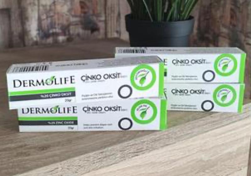 Dermolife Çinko Oksit Krem (Крем з оксидом цинку Dermolife) — це засіб, що використовується для лікування і профілактики подразнень шкіри, таких як попрілості та дерматит. Крем утворює захисний бар'єр на шкірі, що допомагає запобігти подразненню та дозволяє шкірі загоїтися. Основні властивості та застосування: Діюча речовина: Крем містить 20% оксиду цинку, який відомий своїми протизапальними, захисними та підсушувальними властивостями. Застосування: Допомагає запобігти попрілостям, пелюшковому висипу, екземі, сонячним опікам і незначним пошкодженням шкіри. Склад: Продукт, представлений на зображенні, містить оливкову олію (Zeytinyağlı). Засіб є гіпоалергенним і не містить парабенів, барвників та ароматизаторів.