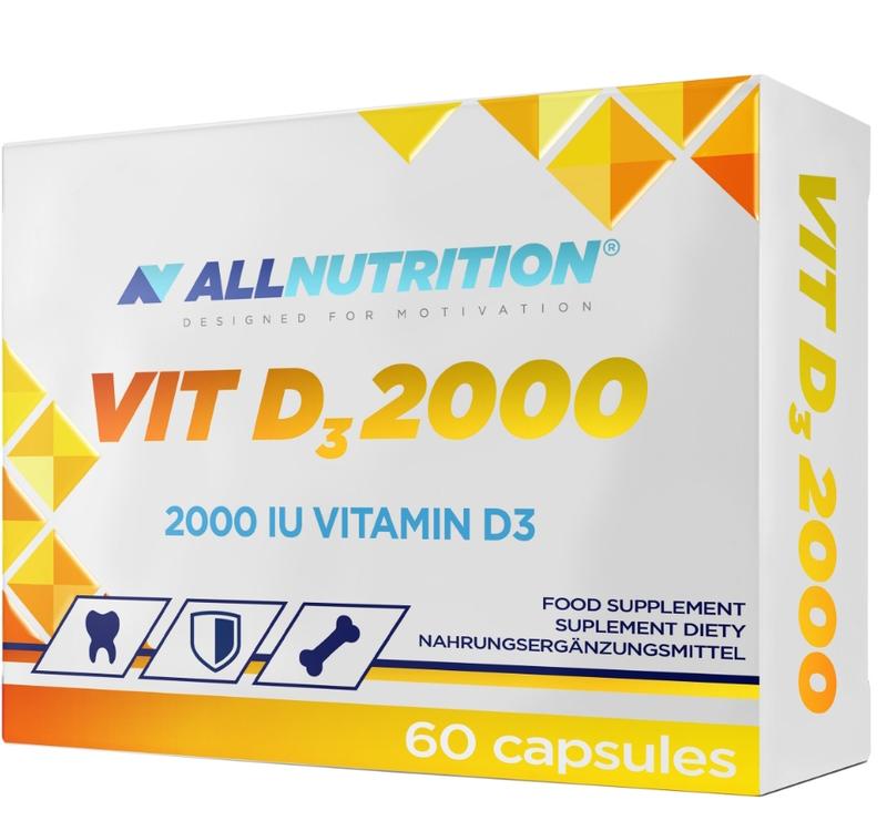ALLNUTRITION D3 2000 є доповненням до щоденного раціону, необхідним для нормального функціонування організму вітаміном D. Практична і маленька гелева капсула полегшує прийом добавки. ALLNUTRITION D3 2000 забезпечує в одній порції аж 1000% *РСН вітаміну D! ЧОМУ ВІТАМІН D ТАК ВАЖЛИВИЙ? Вітамін D сприяє нормальному засвоєнню кальцію і фосфору, підтримці здоров'я кісток і зубів. Він позитивно впливає на нормальне функціонування м'язів і імунної системи [1], що надзвичайно важливо для всіх спортсменів і активних людей. Вітамін D існує у двох формах: холекальциферол (синтезується в шкірі або отримується з їжею) та ергокальциферол (утворюється з ергостеролу, що міститься в дріжджах і грибах капелюшках). Вони є вихідними речовинами, які в організмі перетворюються на активні сполуки, що мають подібну до гормонів дію. Зберігайте гарну форму та здоров'я! Джерело: [1] Розпорядження Комісії (ЄС) № 432/2012 від 16 травня 2012 року. *RWS - Рекомендована Добова Норма Споживання 1 капсула на день, запиваючи водою.