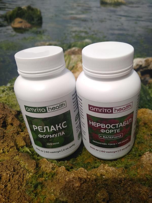 Антистрес тим, хто хоче тримати стрес під контролем із унікальних фітопрепаратів на основі рослинних екстрактів. Комплексна програма для усунення негативного впливу стресу на організм та подолання його негативного наслідку природним шляхом. При покупці в наборі заощаджуйте 10% від повної вартості окремо та у подарунок брошура Комплексні рішення Amrita. Антистрес дієва з низкою вагомих переваг: б швидко заспокоює та нормалізує сон; без сонливості та уповільнених реакцій; без ризику звикання та залежності. Склад набору: Релакс Формула Готу Кола - 1 шт., Нервостабіліз Форте - 1 шт. Релакс - унікальний, заспокійливий з готовності колу для гармонізації розумової діяльності. Заспокоює та покращує настрій при депресії та тривожності. Підвищує продуктивність розуму за високої інтенсивності розумових навантажень.