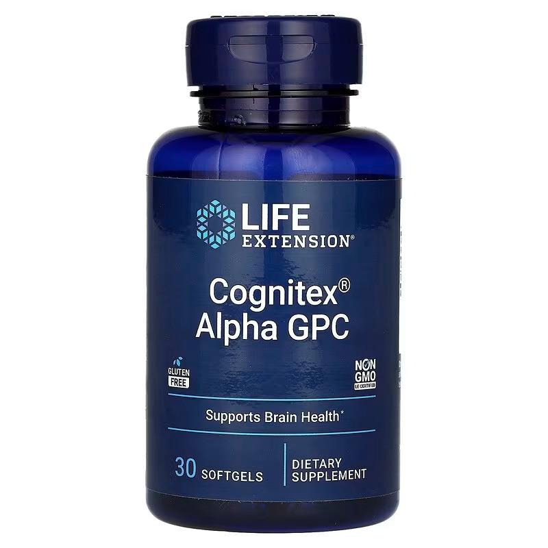 Поліпшення роботи мозку, cognitex alpha gpc, life extension, 30 гелевих капсул