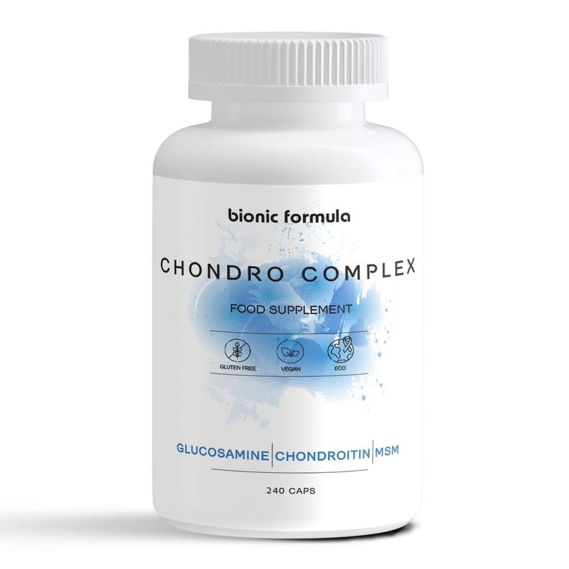 Хондропротектори: Глюкозамін, хондроїтин, МСМ комплекс для раціону з акцентом на суглоби, коліна, хребет Хондропротектори -- це речовини, які включають до складу харчових добавок і раціонів, орієнтованих на різноманітне харчування при фізичних навантаженнях або з віком. Вони містять компоненти, що входять до структури хрящової тканини, та можуть використовуватися в рамках збалансованого харчування з акцентом на підтримання рухливості суглобів і опорно-рухового апарату. Можливі ознаки зниження рівня речовин, що входять до складу хрящової тканини (глюкозаміну, хондроїтину, сірки MSM), можуть включати: - Відчуття скутості під час руху - Дискомфорт у ділянці суглобів при навантаженнях - Зменшення рухливості та гнучкості суглобів - Відчуття втоми в опорно-руховому апараті - Повільне відновлення після фізичної активності - Зниження еластичності сполучних тканин Ефект від прийому комплексу глюкозаміну, хондроїтину та MSM: - Підтримка рухливості при повсякденній активності - Збереження комфортних відчуттів у суглобах при навантаженнях - Підтримка гнучкості та еластичності сполучних тканин - Сприяння нормальній роботі опорно-рухового апарату - Підтримка загального комфорту при тривалому русі або тренуваннях Склад на порцію 8 капсул: Як приймати: - Приймайте по 8 капсул на день під час їжі - Запивайте достатньою кількістю води - Добову порцію можна розділити на 2 прийоми -- вранці та ввечері - Рекомендується регулярне вживання у складі різноманітного харчування - • Курс прийому може становити від 1 до 3 місяців, за потреби курс можна повторити