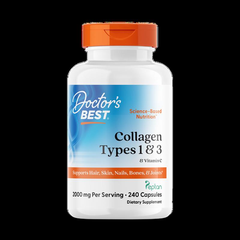 Основні переваги: Types 1 and 3 with Peptan, Doctor's Best, з пептаном та вітаміном C, 500 мг, 240 капсул Колаген типів 1 і 3 з додаванням вітаміну C створений для підтримки стану шкіри, волосся, нігтів, а також покращення гнучкості та міцності суглобів, сухожиль і зв'язок Розмір порції: 4 капсули Порцій в упаковці: 60 В одній денний порції % Від добової потреби Калорії 5 Білок (гідролізований колаген 1 і 3 типів) 2 г Вітамін С (аскорбат кальцію) 30 мг 33% Гідролізований колаген 1 і 3 типів 2 г (2000 мг) * * Добова потреба не визначена.
