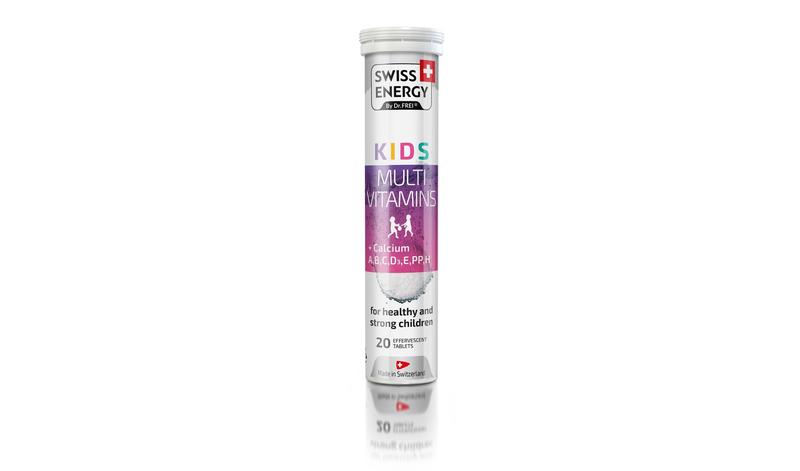 KIDS Multivitamins + Calcium CH від швейцарського бренду Swiss Energy - це мультивітамінний комплекс у формі шипучих пігулок, призначений для щоденного раціону дітей від 7 років Розмір порції: 1 розчинна таблетка Кількість порцій: 20 Кількість на порцію % від добової потреби Кальцій (Карбонат кальцію) 200 мг Вітамін C (L-аскорбінова кислота) 60 мг Вітамін B3 (NE) (Нікотінамід) 14,5 мг Вітамін B5 (D-пантотенат кальцію) 9 мг Вітамін E (a-TE) (D, L-токоферолу ацетат) 6,7 мг Вітамін B2 (Рібофлавін-5-фосфат натрію) 2 мг Вітамін B1 (Тіаміну мононітрат) 1,25 мг Вітамін B6 (Піридоксин) 1,2 мг Вітамін A (RE) (Ретинолу ацетат) 270 мкг Вітамін B9 (Фолієва кислота) 200 мкг Вітамін H (D-Біотин) 70 мкг Вітамін D3 (Холекальциферол) 2,3 мкг Вітамін B12 (Ціанокобаламін) 0,5 мкг