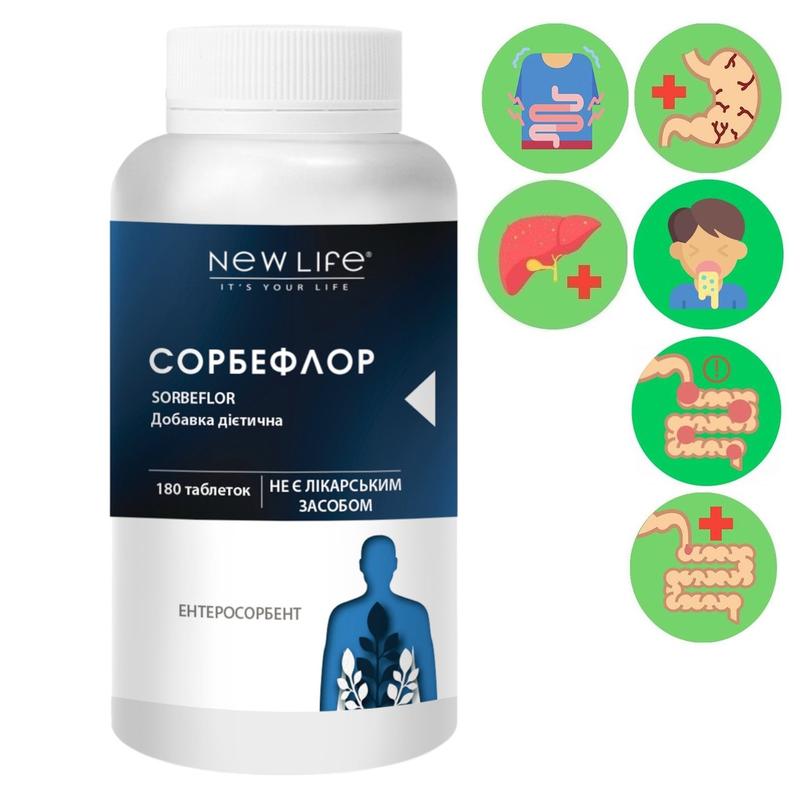 Сорбефлор / sorbeflor добавка дієтична ентеросорбент нове життя (new life) 180 таблеток