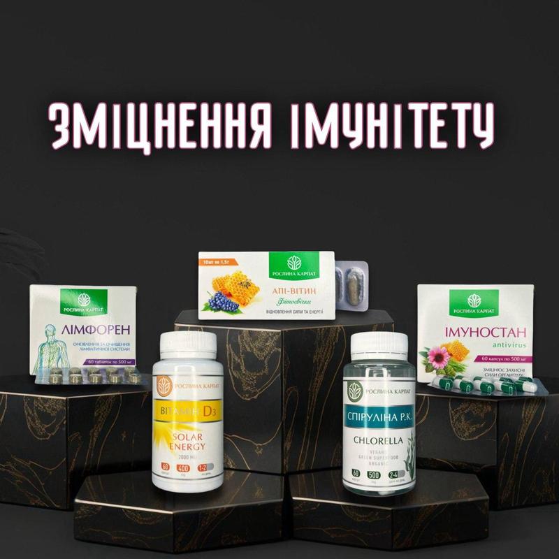 ПОСЛЕОПЕРАЦИОННЫЙ ПЕРИОД, ЧАСТОХВОРОЩИЕ, РЕЦИДИВЫ, ХРОНИЧЕСКИЕ ХВОРОБЫ, СЕЗОННЫЕ ВИРУСНЫЕ ЗАЩИТА И ЭПИДЕМИИ ИМУНОСТАН Antivirus - иммунопрофилактика и общее оздоровление при воспалительных процессах в организме - COVID-19, истощение после стресса, тяжелой усталости и дрш. Защита при эпидемиях гриппа АПІ-ВЕТИН фитосвечи - восстановление организма в целом, также в послеоперационный период, при простудных заболеваниях и COVID-19 ЛИМФОРЕН - улучшает отток лимфы, оказывает дезинтоксикационное, антиэксудативное, иммунокорегулирующее, противовоспалительное действия СПІРУЛІНА Р.К. Chlorella - способствует общему укреплению организма. Обладает тонизирующими свойствами для сердечно-сосудистой, эндокринной, нервной, пищеварительной систем. Повышает умственную и физическую работоспособность ВИТАМИН D3 Solar energy - способствует нормальной работе иммунной системы, снижает чувствительность организма к инфекциям ПРОГРАМА РАЗРАХОВАННАЯ НА 1 МЕСЯЦ