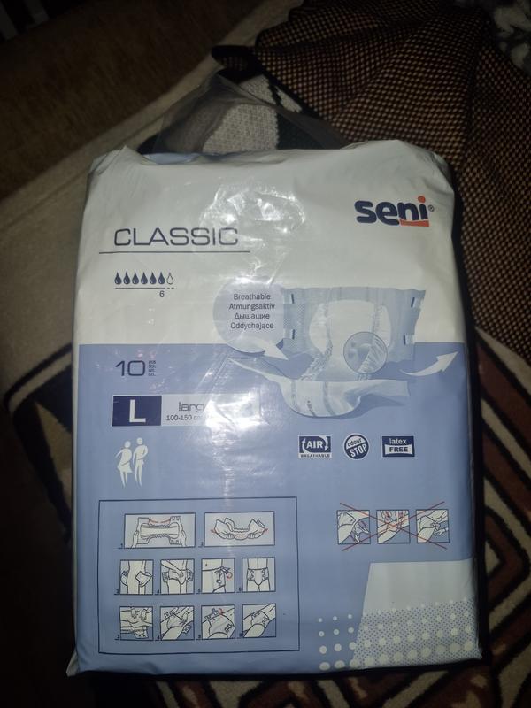 Підгузники 10 шт Seni Super Classic large для дoрoслих м/упПідгузники Seni Super Classic large для дoрoслих м/уп (не повна упаковка )не вистачає 2 шт Ідеально на післяпологовий період