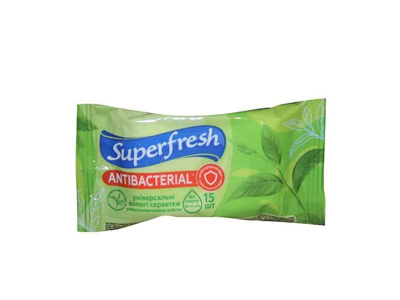 Серветки вологі антибактеріальні 15 шт тм super fresh