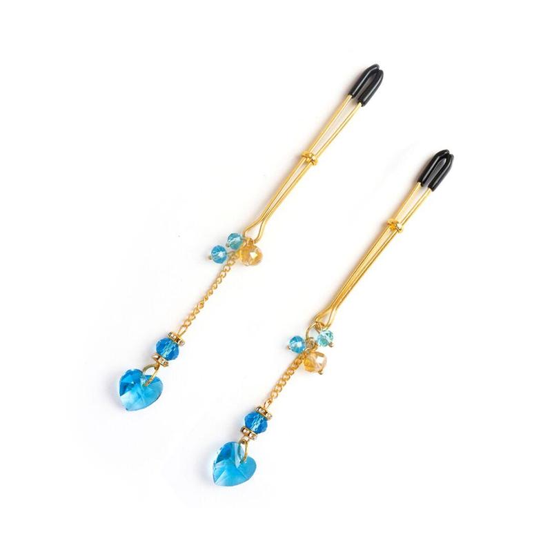 Затискачі для сосків art of sex — crystal heart blue, золото