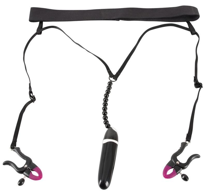 ПЕРЕД ОФОРМЛЕННЯМ ЗАМОВЛЕННЯ ОБОВ'ЯЗКОВО УТОЧНІТЬ НАЯВНІСТЬ ТОВАРУ ЧЕРЕЗ ЧАТ Інтимний аксесуар для жінок - пояс з зажимами для клітора. Додатково пояс оснащений вібропулей з ланцюжком з кульок для стимуляції анального отвору і промежини. Затискачі оснащені м'якими накладками, які запобігають пошкодження ніжної шкіри. Затискачі і вібропуля з'єднані між собою за допомогою регульованого по довжині ремінця. Незамінний атрибут розваг в стилі БДСМ.