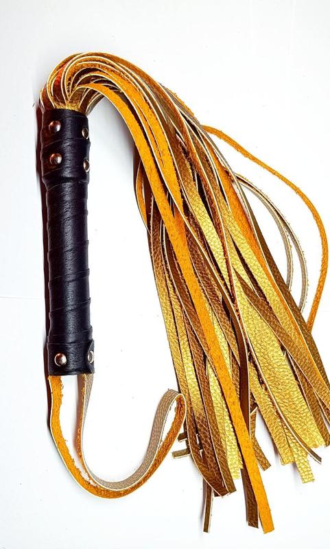 Флогер комбінований зі шкіряною ручкою 31 хвостом завдовжки 36 см бронза sexual toys