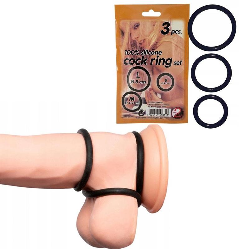 Набір ерекційних кілець 3 шт різного розміру продовження статевого акту you2toys cock ring