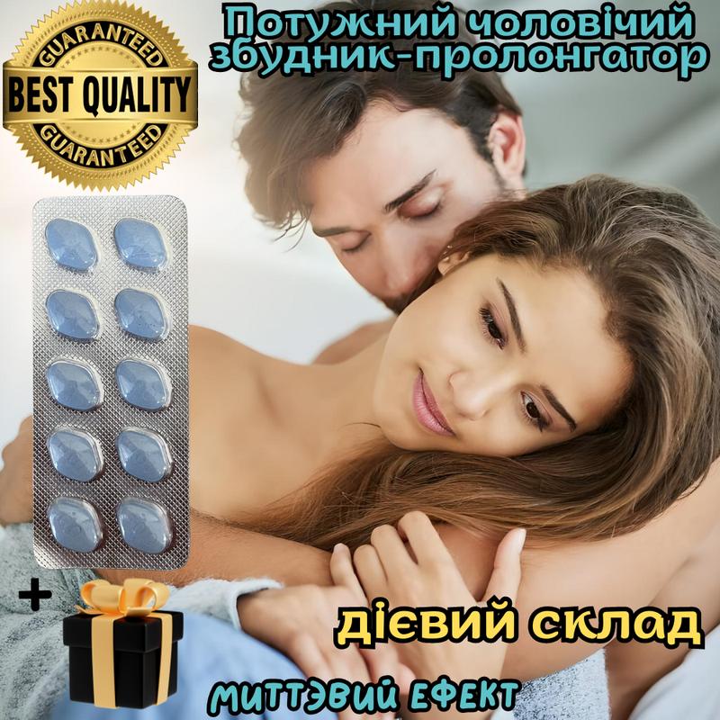 Потужний збудник пролонгатор для чоловіків Оригінал «KamaPills» Вона буде у шоці! Плюс приємний ПОДАРУНОК: ЧОЛОВІЧИЙ або ЖІНОЧИЙ збудник на пробу. Уточнюйте під час оформлення замовлення, який подарунок вас цікавить. Пропонуємо до вашої уваги інноваційний продукт - чоловічий препарат у таблетках, який допоможе досягти нових висот у сексуальному житті. Таблетки для підвищення потенції здатні забезпечити потужний ефект без звикання, гарантуючи міцний стояк та затримку еякуляції. Чоловічий збудник розроблений з урахуванням усіх особливостей чоловічого організму і підходить для чоловіків будь-якого віку від 18 років, які бажають покращити якість свого сексуального життя. Таблетки для довгого сексу забезпечують стійку ерекцію та продовжують тривалість статевого акту, що дозволяє насолоджуватися інтимними моментами протягом тривалого часу. Забудьте про проблеми з ерекцією та незадоволення в ліжку - потужний чоловічий збудник гарантує незабутні відчуття та впевненість у своїх силах. Відкрийте нові горизонти задоволення з таблетками для підвищення потенції та насолоджуйтесь повноцінним сексуальним життям без обмежень. Чоловіча Віагра змінить Ваше життя - переконайтесь у цьому самі! Упаковка: 10 таблеток ПЛЮС одна у подарунок Інструкція для чоловічих пігулок: приймати не більше однієї таблетки на добу за 10-15 хвилин до статевого акту. Сумісні з алкоголем у невеликих кількостях. Максимальне дозування - 1 таблетка на добу. Ефект проявляється за наявності сексуальної стимуляції. З алкоголем сумісні.