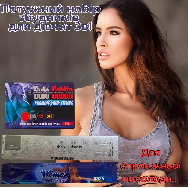 Эффективные женские возбудители Оригинал «**********» Безопасный для здоровья Плюс приятный ПОДАРОК 2 мощные таблетки для мужской силы на пробу. В набор входят: 1. Женские капли ********* - 1 упаковка (2 дозы); 2. Женский стик ****** - 1 шт. 3. Женский стик ********** - 1 шт. Принцип действия препаратов из набора абсолютно одинаковый. Основное отличие в составе. Благодаря этому набору Вы Сможете попробовать разные препараты не покупая целую упаковку. Женская виагра - проверенное временем средство для улучшения сексуальной жизни. Натуральный женский возбудитель поможет достичь максимального удовольствия в интимной сфере, не нанося вреда здоровью. Мощный женский возбудитель - ключ к ярким и насыщенным ощущениям во время близости. Женский усилитель оргазма способствует усилению чувственности и увеличению интенсивности оргазма, делая каждый момент ближе и более интенсивным. Женские возбудитель для оргазма - нежная формула, разработанная для активации сексуального влечения и повышения чувственности. Инструкция для женских капель: флакон рассчитан на 2 приема. Добавлять в любую жидкость, кроме кипятка, объемом до 100 грамм. С алкоголем совместимы. Инструкция для женских стиков: один стик- одна доза. Добавлять в любую жидкость, кроме кипятка, объемом от 50 до 200 грамм. Максимальная дозировка в сутки - 2 стика. С алкоголем совместимы. *Доставка по всей Украине; *Предоплата не требуется; *Заказ можно оформить через *****/********/******** *Помощь в подборе препаратов; *Широкий ассортимент мужских и женских возбудителей; *Полная анонимность 100%.