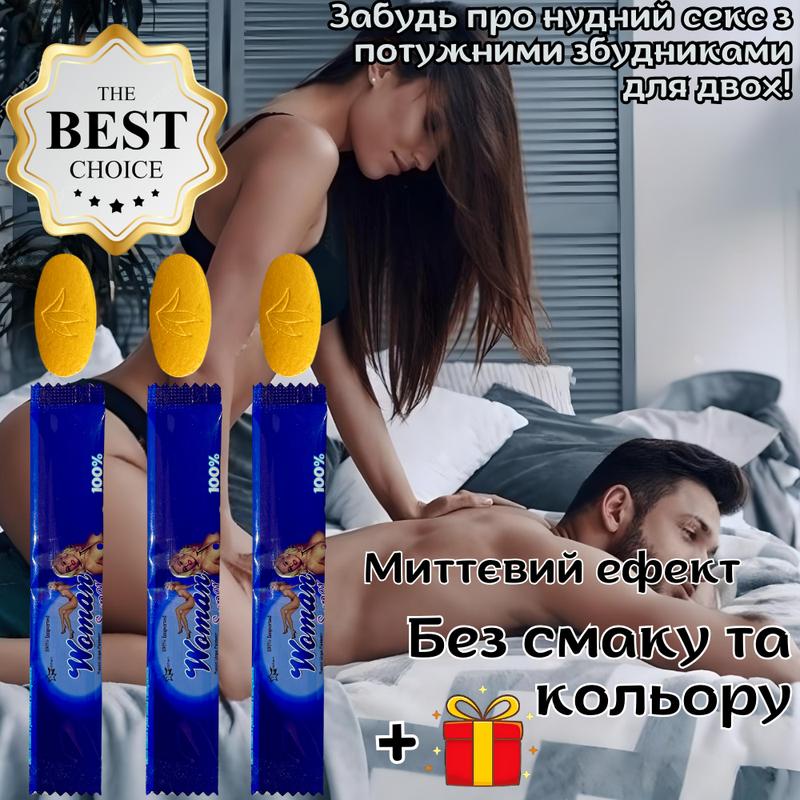 Збудники для двох Віагра Оригінал «*********» Безпечні препарати для кращого сексу Зверніть увагу! У набір входить 3 чоловічі таблетки (пролонгатор і зміцнюють потенцію) і 3 жіночі стики (викликають бажання сексу і посилюють відчуття в процесі) Плюс приємний ПОДАРУНОК: ЧОЛОВІЧИЙ або ЖІНОЧИЙ збудник на пробу. Уточнюйте під час оформлення замовлення, який подарунок є кращим. **Чоловічий Збудник:** Чи готові ви змінити своє сексуальне життя на краще? Наш потужний чоловічий збудник - ваш надійний супутник у цій захоплюючій подорожі. Розроблений з урахуванням найвищих стандартів якості, він обіцяє подарувати вам моменти неперевершеної насолоди та пристрасті, роблячи кожне ваше інтимне заняття незабутнім та задовільним. Цей продукт - це не просто ще один препарат на ринку, це ваш ключ до нових можливостей та яскравих відчуттів. Він пропонує не тільки стійку ерекцію, але й тривалий ефект, який допоможе вам насолоджуватися інтимними стосунками довше та інтенсивніше. І найважливіше - він абсолютно безпечний для вашого здоров'я і не викликає звикання. Цей чоловічий збудник - ваша секретна зброя у досягненні сексуального задоволення та самоствердження. Довіртеся його потужності та ефективності, і ви знайдете нові грані інтимних задоволень та впевненості. Не пропустіть можливість перетворити ваше сексуальне життя - придбайте потужний чоловічий збудник прямо зараз і відчуйте різницю! **Жіночий збуджувач:** Бажаєте зробити свої сексуальні фантазії реальністю? Наш потужний жіночий збудник - ваш ідеальний вибір для тих, хто прагне більш яскравих та насичених інтимних відносин. Спеціально розроблений з використанням передових технологій, він обіцяє подарувати вам моменти неймовірної насолоди та пристрасті, роблячи кожен ваш еротичний момент незабутнім та задовільним. Цей жіночий збудник - це не просто ще один препарат на ринку, це ваш ключ до нових можливостей та яскравих відчуттів. Він пропонує не тільки збільшення сексуального потягу, але й посилення відчуттів під час інтимних контактів, роблячи їх більш насиченими та приємними. І найважливіше - він абсолютно безпечний для вашого здоров'я і не викликає звикання. Цей жіночий збудник - ваш шанс наполягти на своїх правах на повноцінне та яскраве сексуальне задоволення. Дозвольте собі поринути у світ справжніх пристрастей та насолод - придбайте потужний жіночий збудник прямо зараз та підготуйтеся до неймовірних відчуттів! Інструкція: для жіночих стіків одна ампула - одна доза. Додавати в будь-яку рідину, окрім окропу, об'ємом від 50 до 200 грам. Максимальне дозування на добу - 2 ампули. З алкоголем сумісні. Інструкція для чоловічих пігулок: приймати не більше однієї таблетки на добу за 10-15 хвилин до статевого акту. Сумісні з алкоголем у невеликих кількостях. Максимальне дозування - 1 таблетка на добу. Ефект проявляється за наявності сексуальної стимуляції. З алкоголем сумісні. *Доставка по всій Україні; * Не потрібно платити наперед; * Допомога у підборі ліків; *Широкий асортимент чоловічих і жіночих збудників; * Повна анонімність 100%; * Заказ можна оформити через *****/********/********