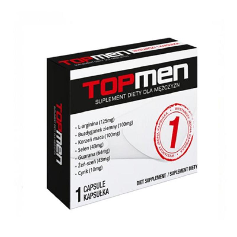 TopMen — єдиний ефективний засіб проти проблем з ерекцією, доступний без рецепта! Він зобов'язаний своєю ефективністю ідеально підібраним інгредієнтам. TopMen гарантує вам ерекцію сильнішою на 200% — ви будете здивовані, наскільки сильною буде ваша ерекція! Його складність допоможе вашому сексуальному виготовленню! Ви будете займатися секс, про який ніколи не мріяли, ні ви, ні ваш партнер! TopMen — новинка на європейському ринку, але завдяки своїй ефективності вона вже завоювала безліч клієнтів. Наш продукт рекомендується клієнтам з усього світу. Він був випробуваний мільйонами чоловіків із видатними результатами. TopMen — найкращий продукт для ерекції, будь-коли зроблений. Унікальна формула TopMen: Завдяки інноваційним рішенням TopMen був виготовлений на основі відомих інгредієнтів, але в інноваційній формі та з безпрецедентними пропорціями, який надає вам монтаж найвищого рівня. L-аргінін — сприяє збільшенню вироблення оксиду азоту в організмі, а також зниженню натягу стінок кровоносних судин. Обидва чинники забезпечують вільніший потік крові в член. Збільшення виробництва сперми та рухомості сперматозоїдів сприяє інтенсивнішій ерекції. Tribulus terrestris — стимулює чоловічий сперматогенез і жіночий овувогенез. Він захищає від ожиріння внутрішніх органів і одночасно знімає симптоми андропаузи. Крім того, за короткий час підвищується рівень вільного тестостерону в крові за одночасної підтримки ерекції. Корінь женьшеню — систематично приймається, постійно підвищує лібідо. Підсилює приплив крові до статевих органів, роблячи можливим досягнення ще більшої ерекції. Завдяки високому вмісту вітамінів, він знижує рівень холестерину та тригліцеридів, запобігаючи у такий спосіб атеросклеротичні захворювання. Корінь маку завдяки увімкненим фітостеролам збільшує кровопостачання статевих органів, унаслідок чого член подовжується і зміцнюється, стаючи ще чутливішим до дотиків. Селен — підвищує працездатність організму. Цинк — дає змогу підтримувати нормальний рівень тестостерону. Гуарана — підвищує працездатність організму, впливаючи на центральну нервову систему. Спосіб застосування: Приймати по 1 таблетці за 30 хвилин до сексуальної активності. Не перевищувати рекомендовану дозу для споживання впродовж одного дня. Дієтична добавка не може використовуватися як заміна будь-якої дієти. Препарати для потенції використовуються для лікування еректильної дисфункції (ЕД) — стану, у якому чоловік відчуває проблеми з досягненням або підтриманням ерекції, достатньої для здійснення сексуального акту. ЕД може бути спричинена різними чинниками, включно з фізичними, психологічними або комбінованими причинами. Препарати для потенції можуть бути корисні для чоловіків, у яких еректильна дисфункція спричиняє дискомфорт і перешкоджає виробленню сексуальної активності. Однак треба зазначити, що препарати для потенції не є лікуванням причини ЕД, а лише тимчасово усувають симптоми. Тому важливо проконсультуватися з лікарем, щоб виявити причини еректильної дисфункції та призначити оптимальне лікування, включно з змінами способу життя, психотерапією або іншими медичними методами. Виробництво харчових добавок, вироблених під брендом SHS (Sexual Health Series), вирізняється високою якістю та відповідає всім законодавчим вимогам, що діють у Європейський Союз