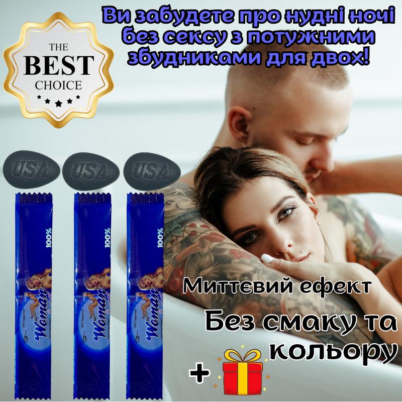 Набір збудників для чоловіка і жінки Оригінал «*******» Препарати для потужних оргазмів Плюс приємний ПОДАРУНОК: ЧОЛОВІЧИЙ або ЖІНОЧИЙ збудник на пробу. Уточнюйте під час оформлення замовлення, який подарунок є кращим. Зверніть увагу! До набору входить: 3 чоловічі таблетки (пролонгатор та зміцнюють потенцію); 3 жіночих стіки (викликають бажання сексу та посилюють відчуття в процесі). Дозвольте уявити потужний чоловічий збудник у таблетках - засіб, створений для чоловіків, які прагнуть впевненості та стабільності в ліжку. Цей продукт розроблений з використанням сучасних технологій, що робить його безпечним для здоров'я та ефективним для регулярного застосування. Таблетки забезпечують стійку та тривалу ерекцію, що робить кожний момент близькості яскравішим і насиченішим. Крім того, збудник виконує роль чоловічого пролонгатора, продовжуючи час акту та посилюючи задоволення. Міцний стояк і затримка еякуляції стануть вашою новою реальністю, дозволяючи вам насолоджуватися більш тривалими та яскравими моментами близькості, даруючи вам та вашій партнерці максимум задоволення. Натуральний жіночий збудник у краплях - це сучасний засіб для посилення жіночих відчуттів. Цей жіночий збудник без смаку та запаху ідеально підходить для використання в будь-яких умовах, оскільки його можна легко додати до будь- яких напоїв, включаючи алкоголь. Потужний жіночий збудник у краплях допомагає розкрити всю силу вашого чуттєвого потенціалу, роблячи кожен момент близькості яскравим та насиченим. Жіночий підсилювач оргазму діє швидко, допомагаючи досягти нових висот задоволення. Помітний жіночий збудник безпечний для здоров'я, не викликає звикання, що робить його ідеальним для регулярного використання. Жіночі краплі для оргазму - це ваш ключ до нових емоцій і насолод, які зроблять ваше інтимне життя яскравішим і насиченішим. Інструкція для жіночих стиків: один стік - одна доза. Додавати в будь-яку рідину, окрім окропу, об'ємом від 50 до 200 грам. Максимальне дозування на добу - 2 стіки. З алкоголем сумісні. Інструкція для чоловічих таблеток: приймати не більше однієї таблетки на добу за 10-15 хвилин до статевого акту. Сумісні з алкоголем у невеликих кількостях. Ефект проявляється за наявності сексуальної стимуляції. *Доставка по всій Україні; *Передоплата не потрібна; *Замовлення можна оформити через *****/********/********; *Допомога у підборі препаратів; *Широкий асортимент чоловічих та жіночих збудників; *Повна анонімність 100%.