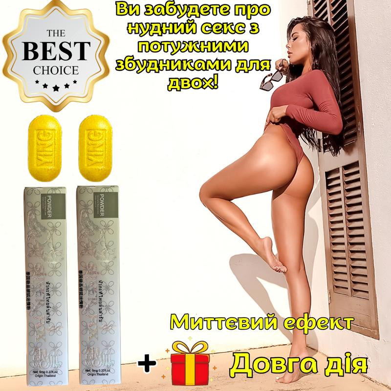Набір збудників для жінки та чоловіка Оригінал «**********» Подвійна насолода Плюс приємний ПОДАРУНОК: ЧОЛОВІЧИЙ або ЖІНОЧИЙ збудник на пробу. Уточнюйте під час оформлення замовлення, який подарунок є кращим. Зверніть увагу! До набору входить: 2 чоловічі таблетки (пролонгатор та зміцнюють потенцію); 2 жіночих стіки (викликають бажання сексу та посилюють відчуття в процесі). Відкрийте для себе потужний чоловічий збудник у таблетках - продукт, створений для чоловіків, які прагнуть покращити якість свого інтимного життя. Цей продукт безпечний для здоров'я, не викликає звикання та підходить для регулярного застосування. Таблетки забезпечують стійку та тривалу ерекцію, що робить кожен момент близькості більш насиченим та яскравим. Продукт розроблений на основі натуральних компонентів, що гарантує його високу ефективність та безпеку. Крім того, збудник виконує роль чоловічого пролонгатора, продовжуючи час сексуального акту та посилюючи задоволення. Міцний стояк і затримка еякуляції стануть вашою новою реальністю, даруючи більше радості та задоволення вам та вашій партнерці. Натуральний жіночий збудник у краплях - це інноваційний засіб, створений для посилення жіночих відчуттів. Цей жіночий збудник без смаку та запаху ідеально підходить для використання у будь-якій обстановці. Потужний жіночий збудник у краплях легко додається до будь-яких напоїв, включаючи алкогольні, не змінюючи їх смакових характеристик. Жіночий підсилювач оргазму допомагає швидше досягти піку насолоди, роблячи кожний момент близькості яскравим та насиченим. Непомітний жіночий збудник безпечний здоров'ю і викликає звикання, що дозволяє використовувати його регулярно. Жіночі краплі для оргазму допоможуть вам розкрити нові грані чуттєвості, зробивши ваше інтимне життя насиченим та повним задоволенням. Інструкція для жіночих стиків: один стік - одна доза. Додавати в будь-яку рідину, окрім окропу, об'ємом від 50 до 200 грам. Максимальне дозування на добу - 2 стіки. З алкоголем сумісні. Інструкція для чоловічих таблеток: приймати не більше однієї таблетки на добу за 10-15 хвилин до статевого акту. Сумісні з алкоголем у невеликих кількостях. Ефект проявляється за наявності сексуальної стимуляції. *Доставка по всій Україні; *Передоплата не потрібна; *Замовлення можна оформити через *****/********/********; *Допомога у підборі препаратів; *Широкий асортимент чоловічих та жіночих збудників; *Повна анонімність 100%.
