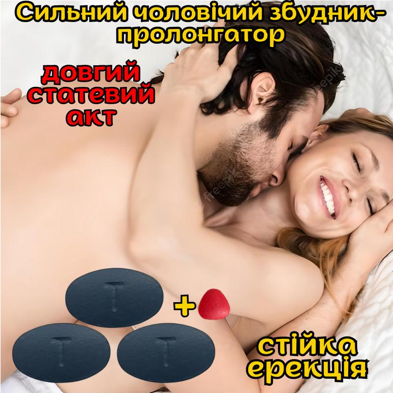 Збудник пролонгатор чоловічий у таблетках Оригінал «IT24754» Дивуй її всю ніч! До кожного замовлення обов'язковий подарунок - чоловічий чи жіночий збудник. Під час оформлення замовлення - повідомте, що обрали. Примітка: вартість товару вказана за 3 таблетки Готовий до нових відчуттів і довгих ночей? Тоді зверни увагу на ці таблетки -- твій незамінний союзник у ліжку. Це потужний чоловічий збудник, який працює тоді, коли тобі це справді потрібно, без несподіванок і без шкоди для здоров'я. У складі -- ретельно підібрані компоненти, перевірені часом. Вони м'яко активують природні процеси та додають впевненості в кожному русі. Якщо ти шукаєш таблетки для довгого сексу, які допоможуть впоратися з напругою й не втрачати контроль -- ти знайшов те, що потрібно. Про невпевненість і втому забудеш -- лише енергія, настрій і справжнє задоволення. А ще приємніше, що засіб підходить навіть тим, хто користувався віагра, але шукає більш сучасний і безпечний варіант. Створені для підвищення потенції, ці таблетки допомагають зберегти чоловічу силу без шкоди для серця чи судин. З ними ти відчуєш реальну різницю: міцна ерекція та затримка еякуляції дадуть тобі повний контроль над процесом. Завдяки збалансованій формулі засіб також діє як чоловічий пролонгатор, даруючи витривалість і стабільність. І, звісно ж, це безпечний чоловічий збудник, який не викликає звикання та не містить гормонів. Усе просто: надійність, ефективність і зручний формат -- ідеальні таблетки для ерекції для сучасного чоловіка. Інструкція для чоловічих таблеток: приймати по одній таблетці на добу за 10-15 хвилин до передбачуваного статевого контакту (не перевищуйте дозування). Сумісні з помірними дозами алкоголю. Дія настає за наявності сексуальної стимуляції. *Гарантуємо повну конфіденційність. Товар доставляється у непрозорій упаковці.