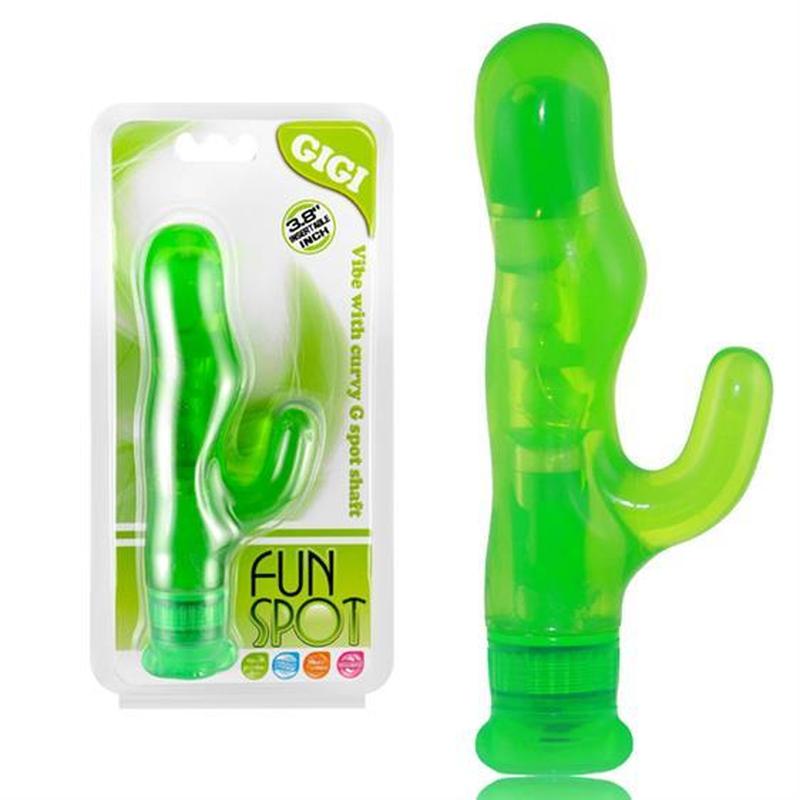 Яскравий і гнучкий вібратор для подвійної стимуляції. Створений у зеленому кольорі з високоякісного гіпоалергенного матеріалу, ніжного та приємного на дотик. Іграшка має хвилясту форму та велику гладку головку для оптимальної стимуляції точки G і відросток для стимуляції клітора або ануса. Мультишвидкісна вібрація зручна для керування на вбудованому контролері. Загальна довжина — 16 см, діаметр — 3 см.