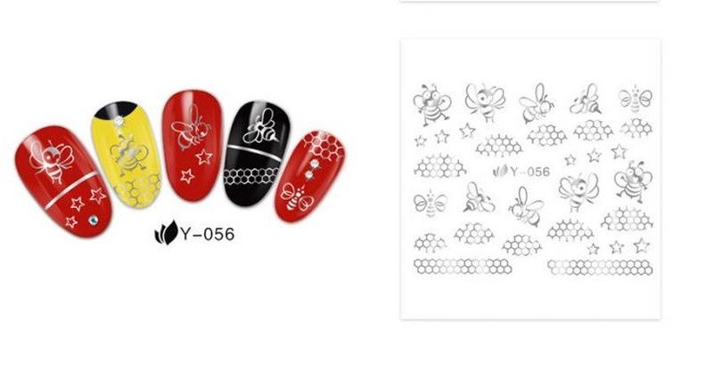 Водные наклейки для ногтей Y-056. Благодаря огромному ассортименту дизайнов каждая девушка может подобрать что- то для себя. Чтобы нанести на ногти наклейки своими руками, вам потребуется лишь минимальный набор знаний и немного ловкости. Переводные наклейки-слайдеры представляют собой тонкую пленку, которая обычно фиксируется на белой или цветной бумажной подложке. Закрепляется она на поверхности ногтей после намачивания в воде. Сама пленка чаще всего полупрозрачная и подходит для частичного декорирования или полного покрытия ногтевой пластины. В зависимости от того, какой лак будет использован вами в качестве основы и закрепителя, будет определена та или иная технология нанесения наклейки. Инструкция по применению: 1)Обезжирить поверхность натуральных ногтей или накрасить лак. 2)Снимите защитную пленку. 3)Вырезать понравившуюся наклейку. 4)Поместить на 10-15секунд в воду. 5)Перенести наклейку с основы на ноготь и аккуратно прижать. 6)Нанести верхнее покрытие (прозрачный лак).