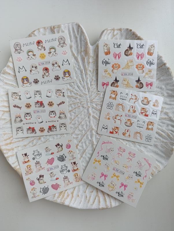 Наклейки для ногтей для маникюра лот набор 6 шт котики
