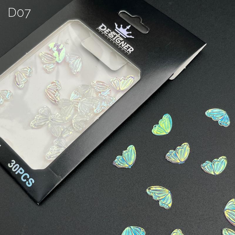 Об'ємні фігурки для нігтів "метелики" 3d designer в упаковці 30 шт, пластикові d07
