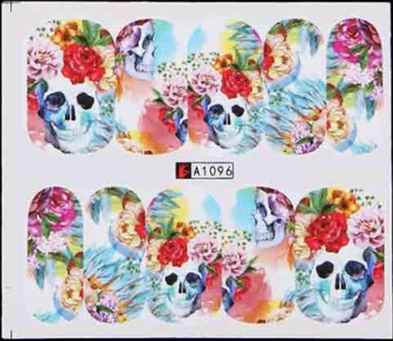 Наклейки на ногти хеллоуин череп с цветами 5 на 6 см разноцветный
