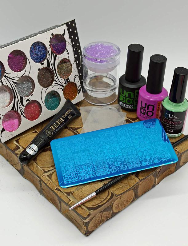 Набор для стемпинга №4 Цена набора 599 грн. В набор входит: 1. Топ для ногтей UNO DIAMOND SHIELD 15 мл 2. База для ногтей UNO RUBBER 15 мл 3. Дефендер Tilda cosmetics 14 мл 4. Двойной штамп для стемпинга "Зефирка" 1 шт 5. Металлическая пластина для стемпинга 12,5*6,5 см. 1 шт (без выбора) 6. Гель краска Milano черная/белая 1 шт (на ваш выбор) 7. Набор разноцветного глиттера 12 шт 8. Кисточка 1 шт