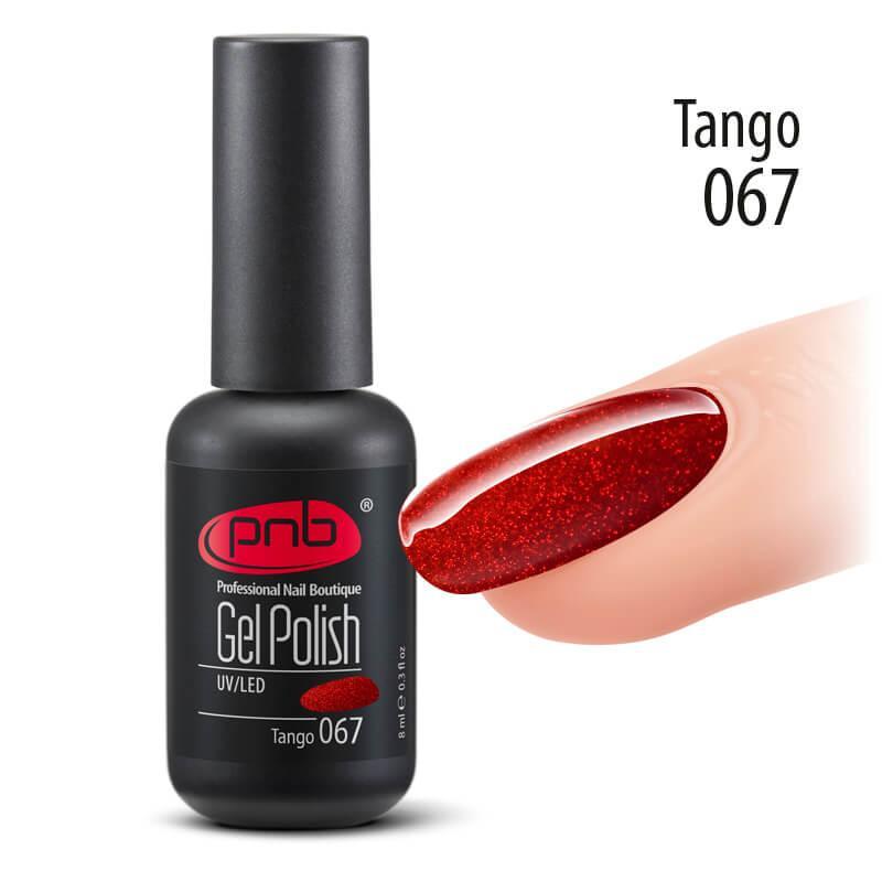 Гель-лак PNB № 67, Tango Цветной гель-лак PNB UV Gel Polish (8 мл) - это современное покрытие, сочетающее в себе лучшие свойства профессиональных лаков для ногтей и моделирующих гелей. Уникальная формула гель-лаков позволяет легко создать безупречный маникюр, который обладает идеальным глянцевым блеском, яркостью цвета, потрясающей стойкостью, без сколов и царапин в течение трех недель. ## Сделать покрытие с помощью гель-лака PNB сможет даже начинающий любитель стойкого маникюра Гель-лаки других производителей