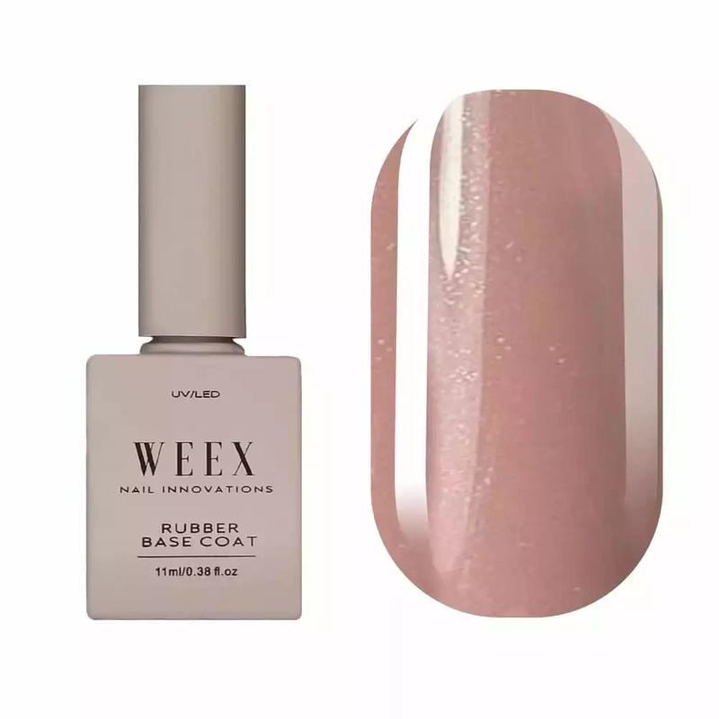 Колекція камуфлюючих каучукових баз з шиммером Weex для ніжних манікюрних дизайнів в стилі Nude База містить кольоровий пігмент, тому надає приємний і наближений до натурального відтінок нігтьовим пластинам. При необхідності її можна нанести декількома шарами, щоб зробити нігтьову поверхню максимально рівною, гарною та естетичною. Ця база має найкращі властивості: самовирівнюється, не тече, гарантує міцне зчеплення гель-лаку і гелю. Розчинна формула сприяє легкому та швидкому зняттю за допомогою рідин для видалення гель-лаку. Продукт професійний, з поліпшеними характеристиками. Виробник також заявляє про гарну сумісність бази з будь-якими гель-лаками незалежно від торгової марки. Консистенція - середня Рекомендації: наносити в один або кілька шарів, полімеризувати кожен шар 2 хв. в UV-лампі 36 Вт або 60 сек. в LED. Об'єм 11 мл.