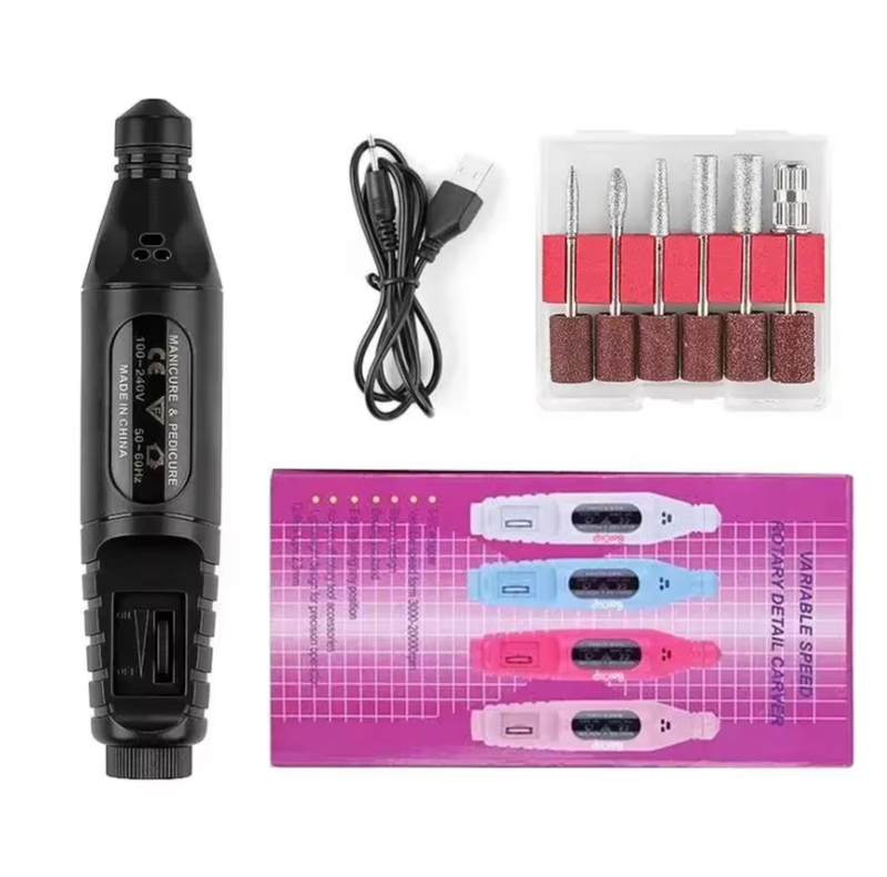variable speed rotary detail carver usb Цвет: черный В набор входит: Электрическая маникюрная дрель, шнур USB и 6 шт. насадок и шлифовальных лент для ногтей.