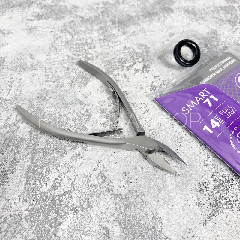 Ногтевые кусачки Smart 71 14 мм получили двойную пружину, которая обеспечивает равномерное распределение нагрузки между ручками. Это в свою очередь устраняет появления усталости или чувства дискомфорта во время работы мастера. Зауженные режущие кромки делают кусачки Smart NS-71-14 отличным инструментом для безопасного и безболезненного удаления вросших ногтей на ногах. А их специальная конструкция позволяет работать с ногтевыми пластинами любой толщины и плотности. Особенности кусачек для ногтей STALEKS PRO SMART 71 14 мм: - высокая твердость металла 48-50 HRC; - долговременное сохранения заточки и остроты инструмента; - профессиональная ручная заточка под микроскопом; - повышенная прочность инструмента; - зауженные рабочие кромки; - массивные изогнутые ручки; - тщательная полировка шарнира для плавного и легкого хода. Полное смыкание и идеальная острота лезвий в разы повышает качество среза. Кусачки Smart 71 14 мм Staleks Pro бережно и эффективно убирают лишнюю длину, не травмируя структуру ногтевой пластины и предотвращая ее расслоение.