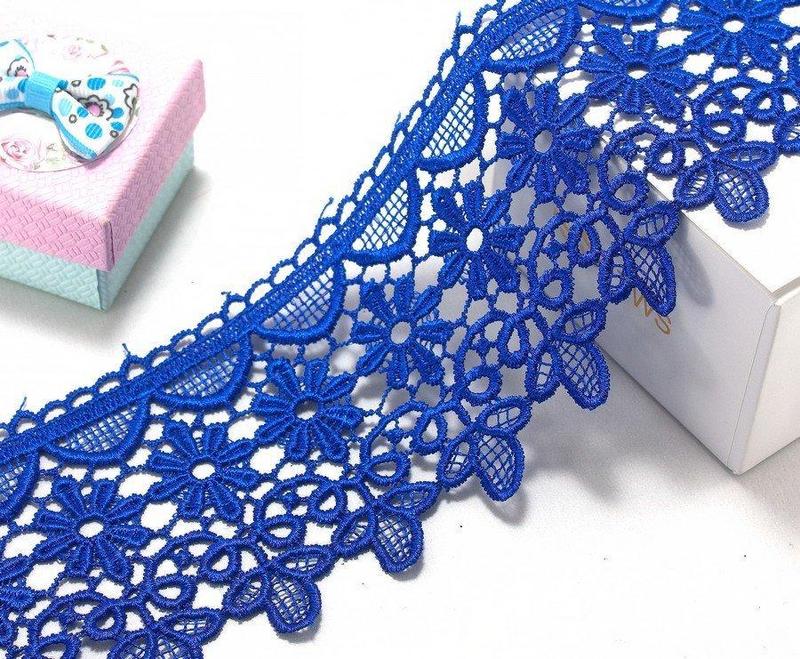 (1 метр) кружево макраме 7см ромашка цвет - синий электрик