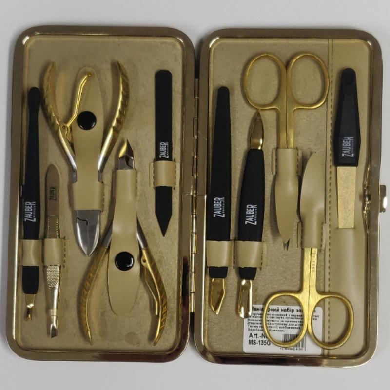 Mанікюрний набір Zauber повної комплектації, інструменти покриті золотим покриттям. Чохол з шовку.