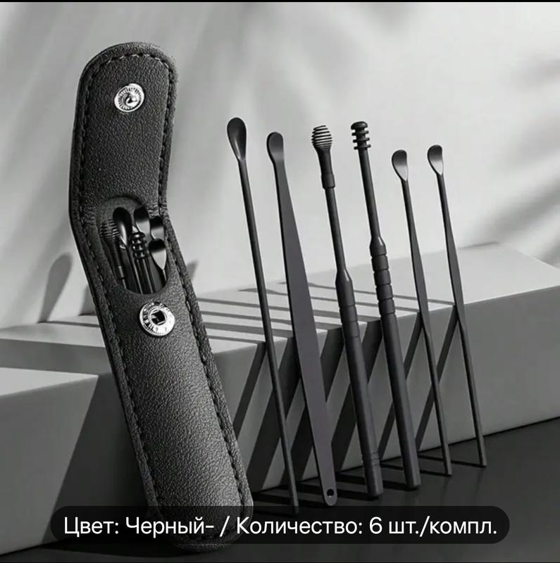 нові набори для чищення вух. В чохлі, металеві чорного кольору.