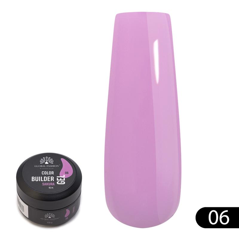 Гель для нарощування та моделювання нігтів global fashion color builder gel 06 sakura, 15...