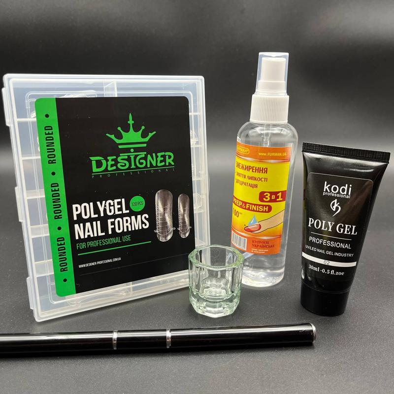 Набор для наращивания 5в1 (верхние формы, полигель kodi 30 мл, кисть)
