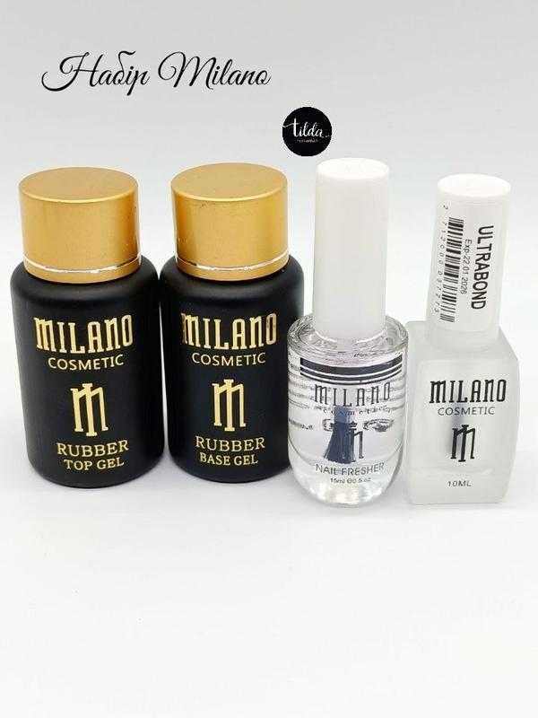 Набор Milano Цена 879 грн. В набор входит: 1. Каучукова база Milano 35 мл 2. Каучуковый топ Milano 35 мл 3. Ультрабонд Milano 10 мл 4. Nail fresher Milano 15 мл