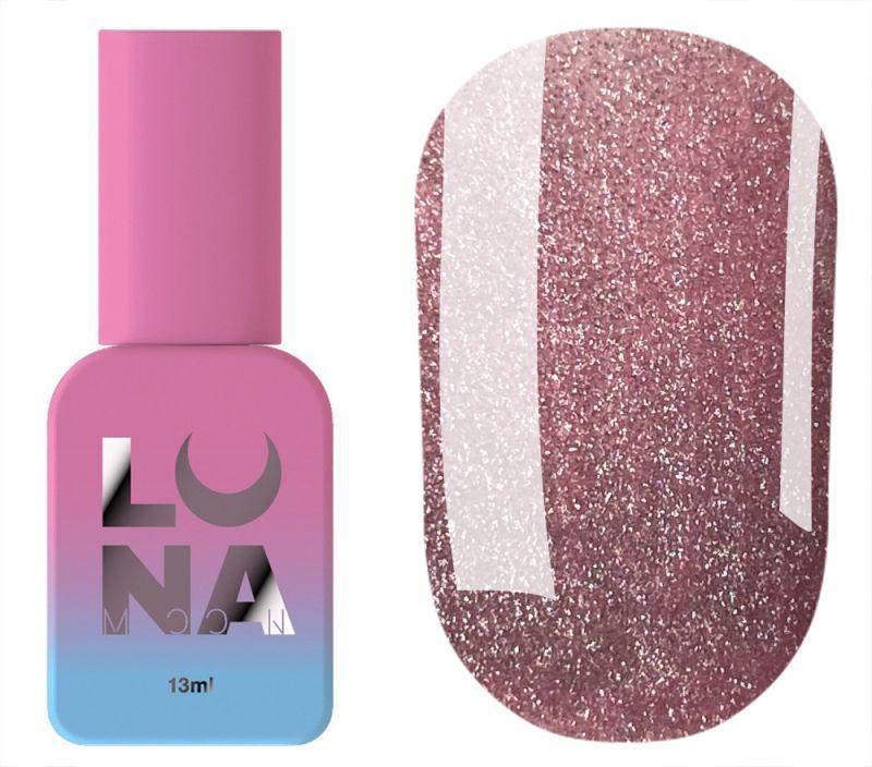 Lurex Base №4-- це камуфлююча світловідбиваюча база. При ввімкненні спалаху вона починає сяяти і виглядає магічно, адже містить у своїй консистенції блискітки. Оcобливості: - Слабокислотна 5-6 pH. - Еластична та гнучка. - Високий рівень перекриття натурального нігтя через високу пігментацію. - Може давати мінімальну усадку в процесі носіння через те, що вона еластична. - Консистенція середня, самовирівнюється. - Забезпечує носибельність без відшарувань 3-4 тижні. - Має нейтральний запах. - Виключає сильне нагрівання нігтьової пластини в процесі полімеризації, тому не викликає печіння в лампі. - Гіпоалергенна. - Добре знімається як спилюванням, так і рідиною. - Не тече та дуже швидко самовирівнюються. - Потребує підкладки з Rubber base. - Не підходить для вирівнювання довгих нігтів, без попереднього укріплення. - Час сушіння в лампі 120 секунд. - Можна додатково розігрівати, щоб зробити консистенцію ще рідшою. - Потужність лампи для просушки -- 48 W (це має бути тільки оригінальна лампа). - Основне правило при вирівнюванні -- товщина має бути 1-1,5 мм на торці. - Тиксотропна -- стає рідкішою в роботі при рухах пензлика. Метод нанесення: 1. Зняття. 2. Форму нігтя не опилюємо. Або залишаємо запасних 2 мм довжини, які опиляємо та заберемо після вирівнювання. 3. Пилкою 220 гріт запилюємо без сильного натиску ніготь зверху, піднімаючи лусочки нігтьової пластини або ж використовуємо баф 100 гріт. 4. Манікюр. 5. Якщо ви працюєте ремуверами, після їх використання потрібно помити руки водою з милом. 6. Обезжиренння нігтя. Потрібно зробити два підходи. Використовуємо 4 серветки. Одна серветка на 5 пальців. Перший підхід -- протираємо поверхню нігтя. Другий підхід -- беремо апельсинову паличку, одягаємо серветку і протираємо все в зоні кутикули та в пазухах. 7. Дегідратор (не обовʼязково) 8. Праймер використовуємо за бажанням. Але якщо база для підложки має достатню кислотність,то праймер не потрібний. 9. Підкладка з Rubber base Lunamoon. Найкраще наносити плоским пензлем для гелю. Рухи повинні бути втираючі. Важливо промалювати усі пазухи нігтя. Сушити 30 секунд. 10. Стерти липкість. 11. Вирівнювання. Сушити в лампі 120 секунд. 12. Опил форми після вирівнювання. Це потрібно для того, щоб на торці утворилась товщина, яка буде тримати вільний край. 13. Після опилу стираємо липкість. 14. Нанести топ та сушити 120 секунд. Після просушки нічим не протирати, адже може втратитись блиск.