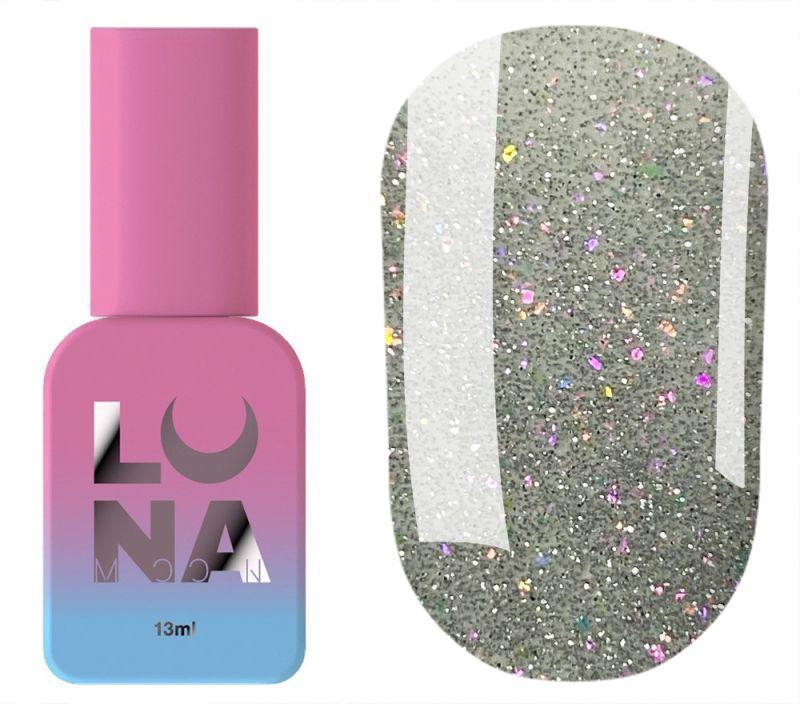 Lurex Base №10-- це камуфлююча світловідбиваюча база. При ввімкненні спалаху вона починає сяяти і виглядає магічно, адже містить у своїй консистенції блискітки. Оcобливості: - Слабокислотна 5-6 pH. - Еластична та гнучка. - Високий рівень перекриття натурального нігтя через високу пігментацію. - Може давати мінімальну усадку в процесі носіння через те, що вона еластична. - Консистенція середня, самовирівнюється. - Забезпечує носибельність без відшарувань 3-4 тижні. - Має нейтральний запах. - Виключає сильне нагрівання нігтьової пластини в процесі полімеризації, тому не викликає печіння в лампі. - Гіпоалергенна. - Добре знімається як спилюванням, так і рідиною. - Не тече та дуже швидко самовирівнюються. - Потребує підкладки з Rubber base. - Не підходить для вирівнювання довгих нігтів, без попереднього укріплення. - Час сушіння в лампі 120 секунд. - Можна додатково розігрівати, щоб зробити консистенцію ще рідшою. - Потужність лампи для просушки -- 48 W (це має бути тільки оригінальна лампа). - Основне правило при вирівнюванні -- товщина має бути 1-1,5 мм на торці. - Тиксотропна -- стає рідкішою в роботі при рухах пензлика. Метод нанесення: 1. Зняття. 2. Форму нігтя не опилюємо. Або залишаємо запасних 2 мм довжини, які опиляємо та заберемо після вирівнювання. 3. Пилкою 220 гріт запилюємо без сильного натиску ніготь зверху, піднімаючи лусочки нігтьової пластини або ж використовуємо баф 100 гріт. 4. Манікюр. 5. Якщо ви працюєте ремуверами, після їх використання потрібно помити руки водою з милом. 6. Обезжиренння нігтя. Потрібно зробити два підходи. Використовуємо 4 серветки. Одна серветка на 5 пальців. Перший підхід -- протираємо поверхню нігтя. Другий підхід -- беремо апельсинову паличку, одягаємо серветку і протираємо все в зоні кутикули та в пазухах. 7. Дегідратор (не обовʼязково) 8. Праймер використовуємо за бажанням. Але якщо база для підложки має достатню кислотність,то праймер не потрібний. 9. Підкладка з Rubber base Lunamoon. Найкраще наносити плоским пензлем для гелю. Рухи повинні бути втираючі. Важливо промалювати усі пазухи нігтя. Сушити 30 секунд. 10. Стерти липкість. 11. Вирівнювання. Сушити в лампі 120 секунд. 12. Опил форми після вирівнювання. Це потрібно для того, щоб на торці утворилась товщина, яка буде тримати вільний край. 13. Після опилу стираємо липкість. 14. Нанести топ та сушити 120 секунд. Після просушки нічим не протирати, адже може втратитись блиск.