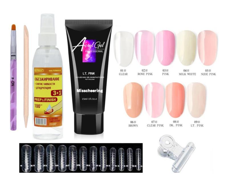Полигель акригель стартовий набір для нарощування нігтів манікюру гель лак кисть затискач...