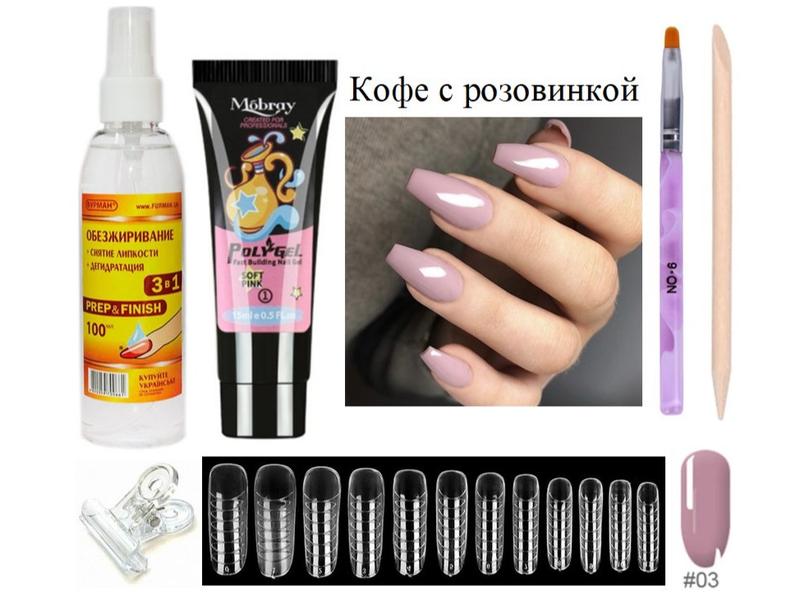 Полігель стартовий набір акригель для нарощування нігтів манікюру зажим форми гель лак баз...