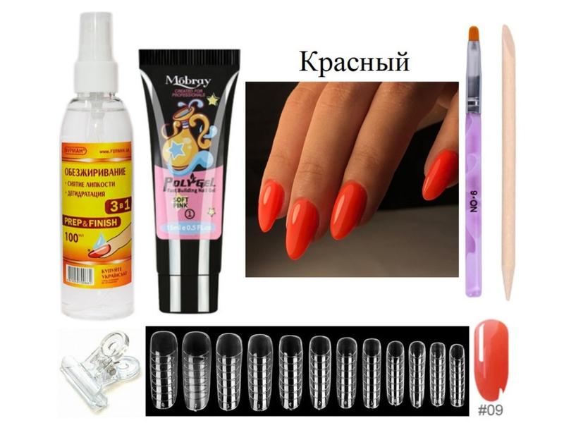 Полігель стартовий набір акригель для нарощування нігтів манікюру зажим форми гель лак баз...